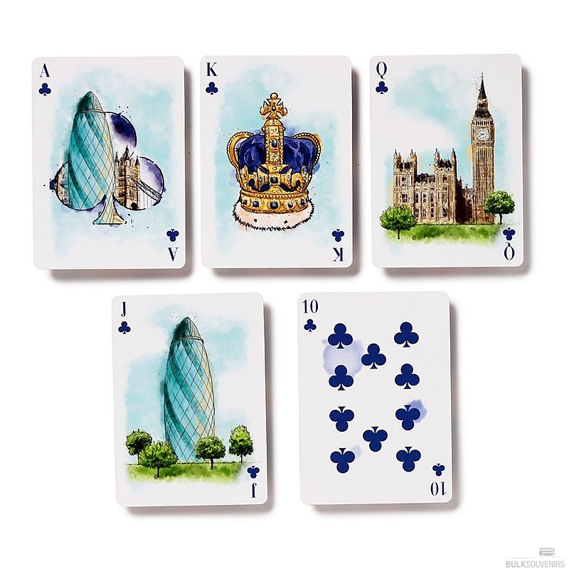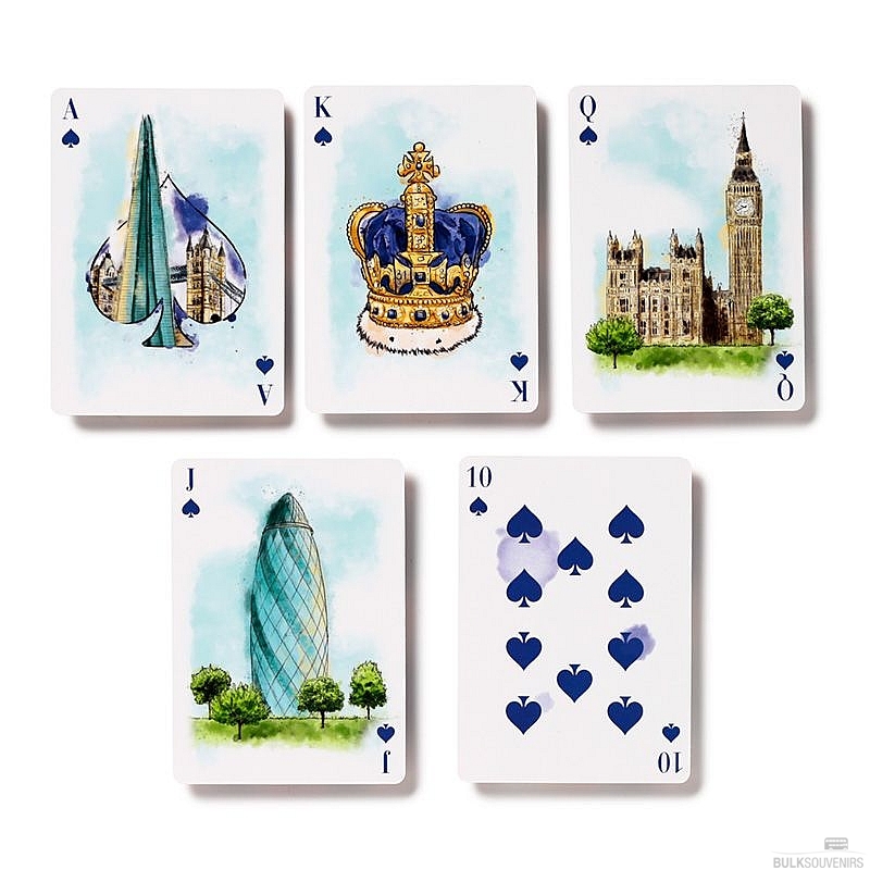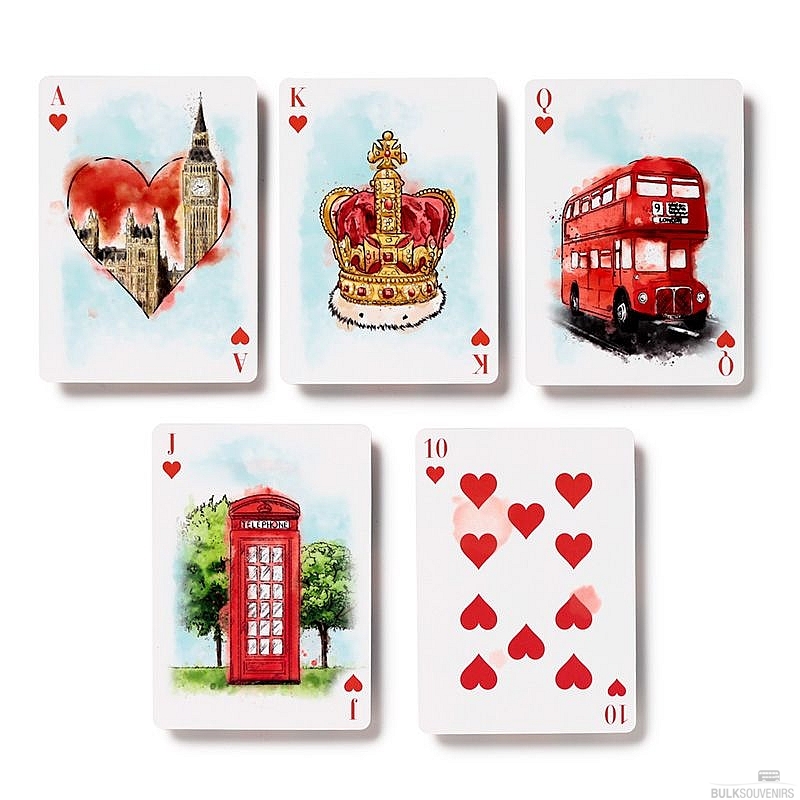 Embark on a London adventure with our wholesale lot of 12 London Souvenir Playing Card decks! Each card is a mini-tour of London's finest, showcasing iconic landmarks like the Gherkin, double-decker buses, majestic crowns, and more. Perfect for souvenir shops, gift stores, or anyone wanting to capture the essence of London in a deck of cards.
